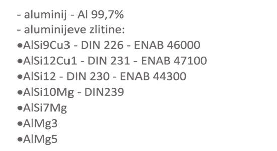 Nudimo vam široko paleto barvnih kovin in livarskih zlitin: